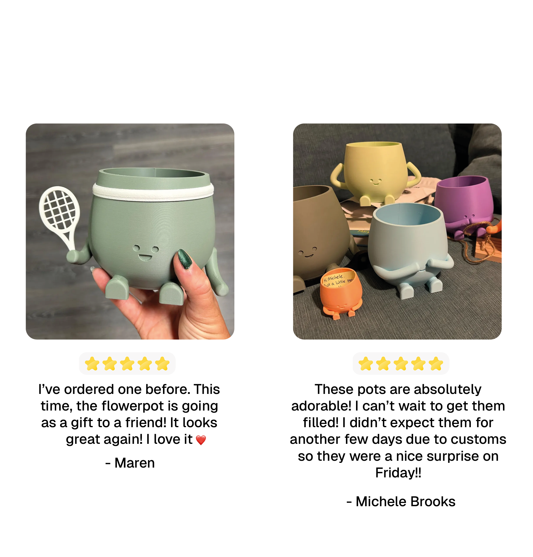 I love this cute plant pot! :) Great craftsmanship, it doesn't look like it was 3D printed at all. So great, I'm absolutely thrilled, and the selection in the shop is amazing! This won't be my last purchase! Thank you so much.